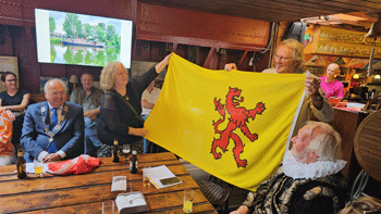 ![]() Peter van der Velden - Burgemeester van Leiden biedt de vlag aan de LVBHB |